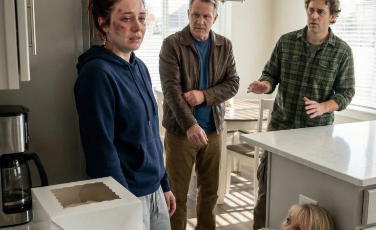 Dotarłem do niej, zanim się rozpłakała. Jej ciało było sztywne z bólu i upokorzenia, a jej palce kurczowo trzymały się mojego rękawa, jakbym był jedyną stabilną rzeczą w tym pokoju. Rozejrzałem się wokół stołu, po domu pełnym dorosłych, krewnych, świadków.