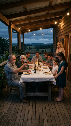 Hónapok teltek el, és Daniel egyre erősebb lett. A haja újra dúsodni kezdett, visszatért a nevetése, és elkezdett bútorokat építeni a garázsban, lassabban, mint korábban, de ugyanazzal a kreativitás szikrával, ami mindig is benne volt. Egyik este kihúzott a verandára, ahol egy vadonatúj hintaszék állt, gondos precizitással elkészítve. Neked, mondta egyszerűen, leültem, és éreztem, ahogy a könnyek elhomályosítják a látásomat, miközben gyengéden ringatóztam, a szék pedig ismerős melegséggel nyikorgott. Luke-ot is befogadtuk a hagyományainkba. A vasárnapi vacsorák a nevetéssel és a csendes hálával teli mindennapokká váltak. Néha rajtakaptam Danielt és Luke-ot, amint félmosolyokkal néznek egymásra, mintha még mindig nem tudták volna elhinni, hogy megtalálták egymást. Egy különösen aranyló őszi estén Daniellel kéz a kézben sétáltunk egy fasorral szegélyezett úton Pine Hollow közelében, és néztük, ahogy a levelek kavarognak a szélben. Luke előttünk haladt, nevetett, miközben a vállán cipelte fiatal unokahúgát, legjobb barátja lányát. Daniel gyengéden megszorította a kezem.
