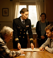 “Dzień dobry. Jesteśmy z Wydziału Śledczego ds. Kryminalnych. Będziemy potrzebować, żebyście wszyscy poszli z nami na komisariat.”